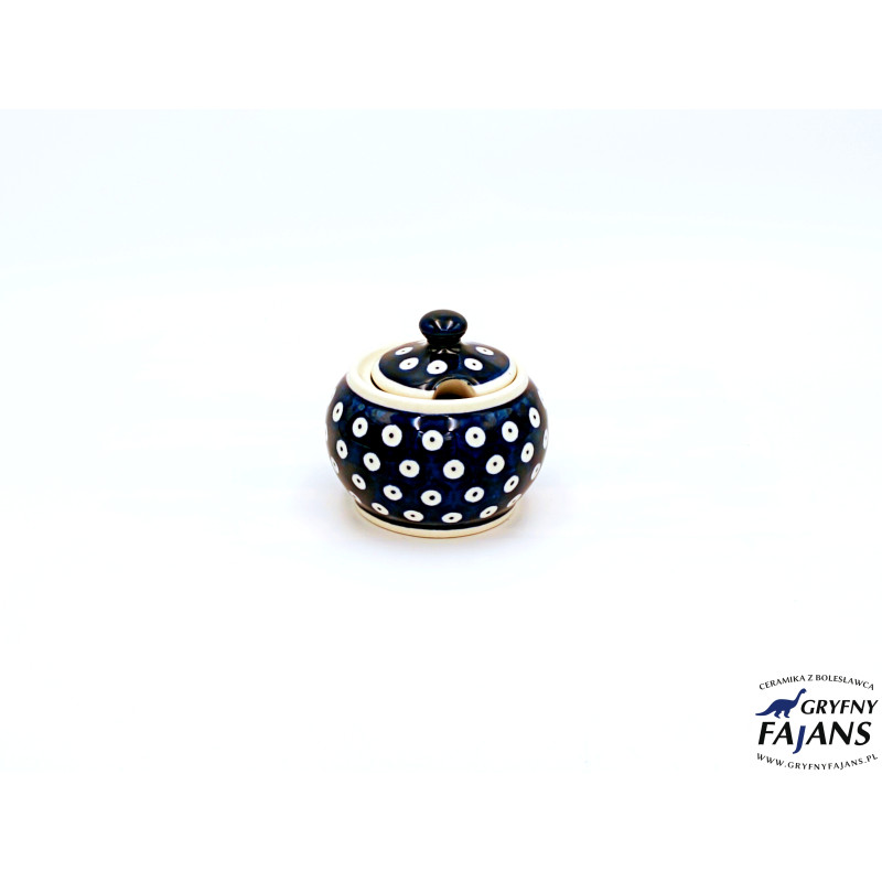 Ceramiczna cukiernica o pojemności 0,15 litra • Pokrywka cukiernicy zapobiega zbrylaniu się cukru, a przewidziane w niej miejsce na łyżeczkę sprawia, że ta ostatnia jest zawsze pod ręką, gdy czas na trochę słodyczy • Dekoracyjny charakter cukiernicy sprawia, że może być stałą ozdobą kuchennego stołu • Cukiernica przystosowania jest do mycia w zmywarkach • Naczynie zostało pokryte szkliwem i wypalone w wysokiej temperaturze, dzięki czemu jego dekoracja jest odporna na zniszczenie